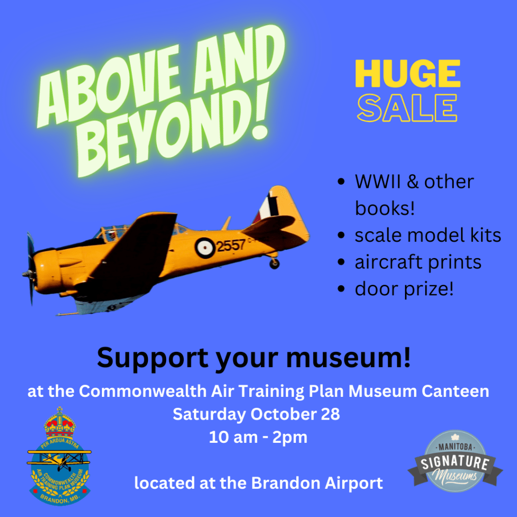 Where? In our historic Canteen building at the Commonwealth Air Training Plan Museum – located at the Brandon Airport!