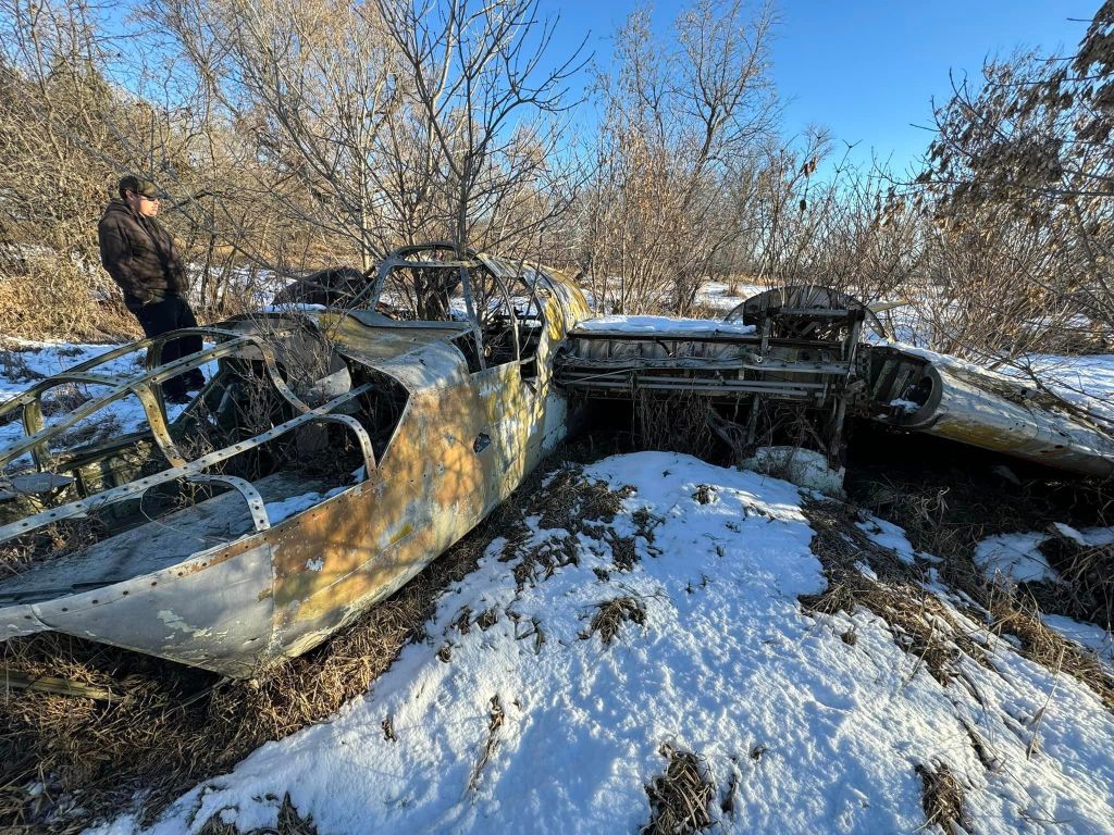 The aircraft had been moved to the site by a distant relative, who purchased the aircraft from Crown Assets after the war in 1946. The relative was apparently most interested in getting the tires off of it. During the war, tires were rationed, so many farmers bought airplanes to simply get the tires. The aircraft was purchased from RCAF Station McDonald, and was pulled to the site with the wings still attached.