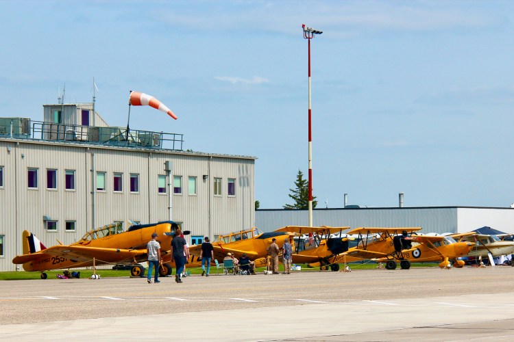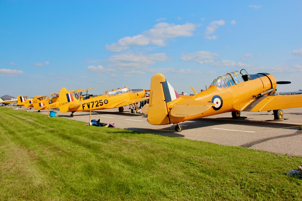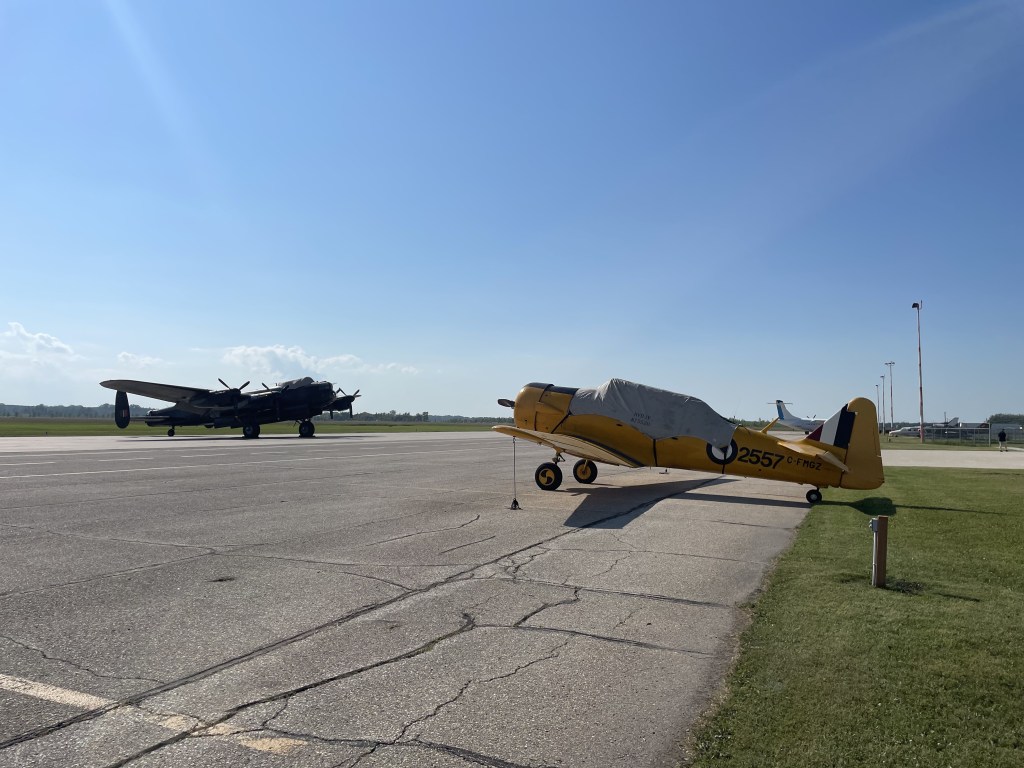 The CATP Museum attended the Manitoba Air Show on August 3rd and 4th. We had, for the first time, all 5 of our flight-worthy aircraft on static display. The five include the first public showing, outside of the museum, of the Fleet Finch. The display was a great success, we interacted with hundreds of people curious about our museum and aircraft. We have heard attendance on day 1 was about 8000, so including both days, there were probably over 12,000 people at the show (these are estimates no the official count!). It was an excellent opportunity to show off our aircraft and tell people about the museum. Having the Canadian Warplane Heritage Museum’s (CWHM) Lancaster at the show was a wonderful sight, especially seeing it near our trainers from the same era, so many men trained in planes like ours, then went on to fight in Lancasters overseas. The CWHM Lanc is one of only 2 that are airworthy, the other is in England. All of our planes are back home in our hangar again, so come on out to see them for yourself.