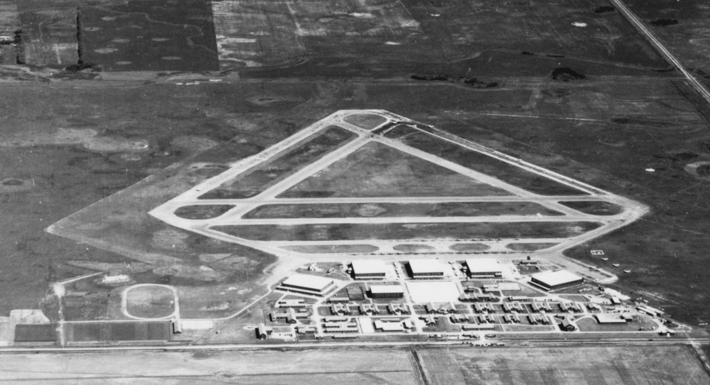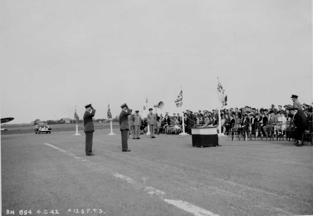 #12 SFTS rose quickly with construction taking in late 1940 into early 1941. Bird Construction Company of Winnipeg was the contractor. Building the school was a massive undertaking, in addition to the five enormous hangars, there were administration buildings, guard houses, barracks (H-Huts), medical facilities, buildings for emergency vehicles, as well as various infrastructure projects for power, water and more to be built. It is easy to imagine the economic benefits of such a large project for the city. In addition to the jobs created, the influx of mean and women to both train and so all the jobs necessary to run the school meant more benefits for the city’s economy. It should be noted that Brandon was also the home of #2 Manning Depot.