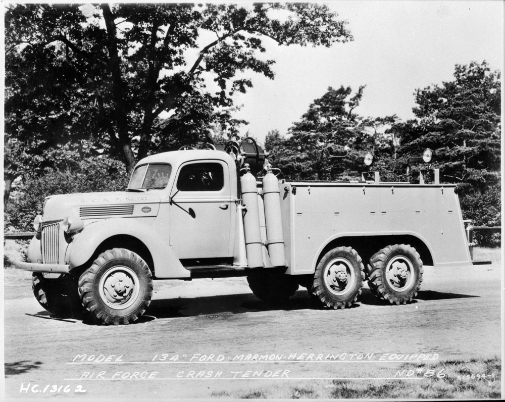Of all the vehicles at a BCATP airfield, emergency responders were some of the most vitally important types, although the hope is that they are seldom required. The vehicle in our collection is a 1942 Marmon-Herrington Ford V-8 all-wheel (6 wheel) drive crash tender. It has a V8 engine with 95 HP. This truck carried 300 gallons of water, 4 C02 cylinders, 2 pike poles, bolt cutters, fire axes, and an asbestos suit. Our crash tender saw service right here at #12 Service Flying Training School, Brandon, MB.