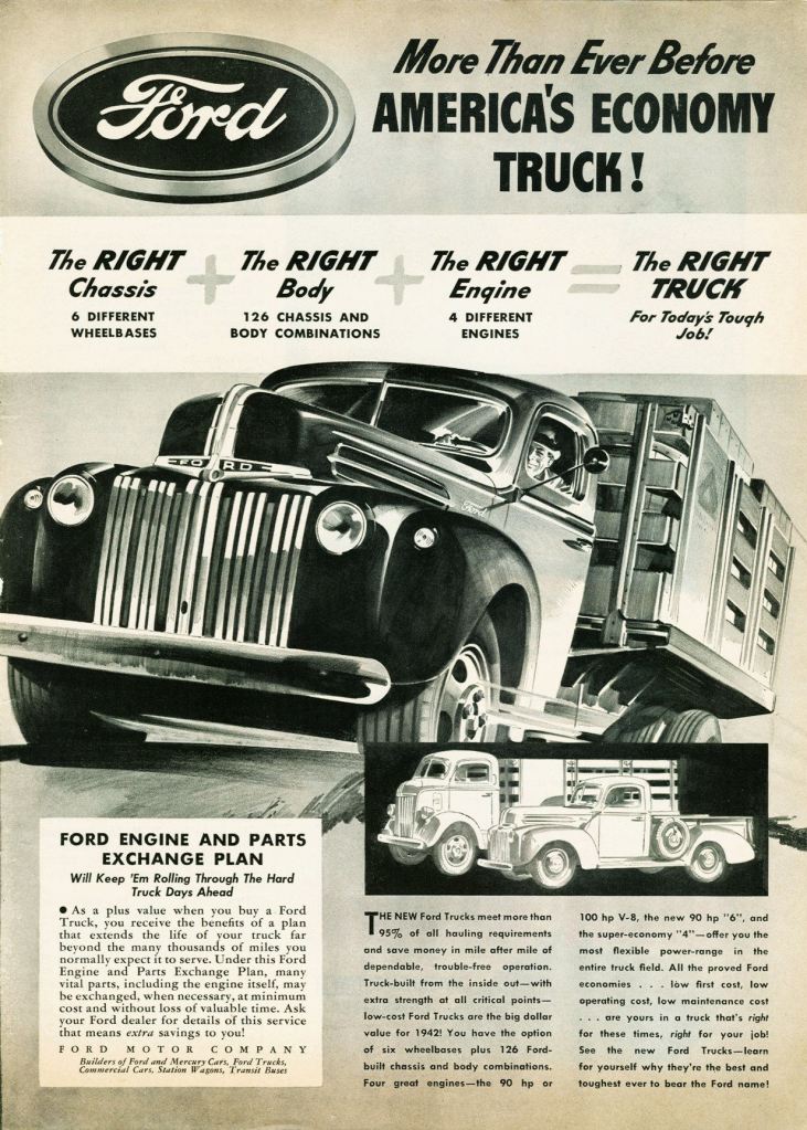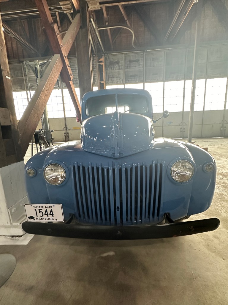 In February of 1942 Ford Motor Company stopped civilian vehicle production and switched over to military production for the war effort and few ½ ton pickups were built. Thus, this truck was probably produced for military usage. This truck was donated by A. Johnson of Brandon. Body work and painting was done courtesy of Brandon “Honda Land”, and mechanical work was done by museum volunteers.