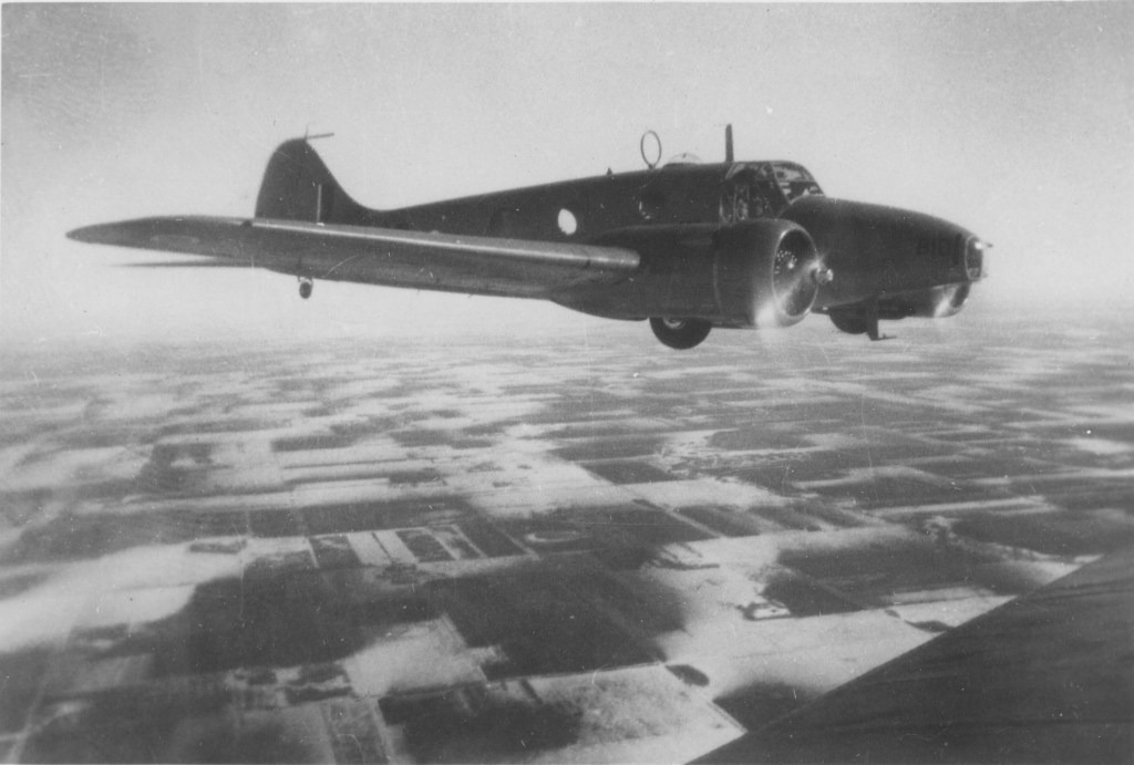 Mark I: Many Mk I Ansons were shipped to Canada for use in the BCATP. The Mk I had a fabric covered metal fuselage with a formed aluminum nose and fabric covered wood. It had a ‘greenhouse cabin” (many windows) with forward firing machine guns. It had fixed pitch Fairey Reed props, and Armstrong Siddeley Cheetah engines (350 hp) with Distinctive cowls with bubbles for the engine cylinder heads. The landing gear was hand cranked and the aircraft had no heat (not so good for Canadian winters!).
